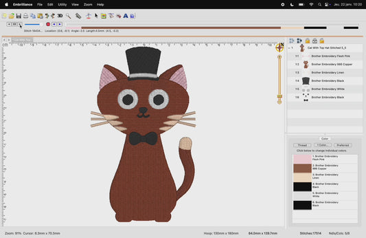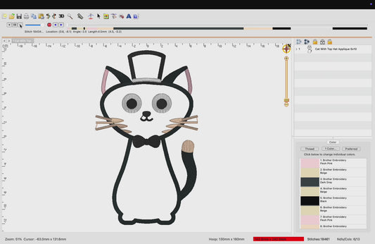 Motif de broderie machine : Appliqué Chat Avec Chapeau