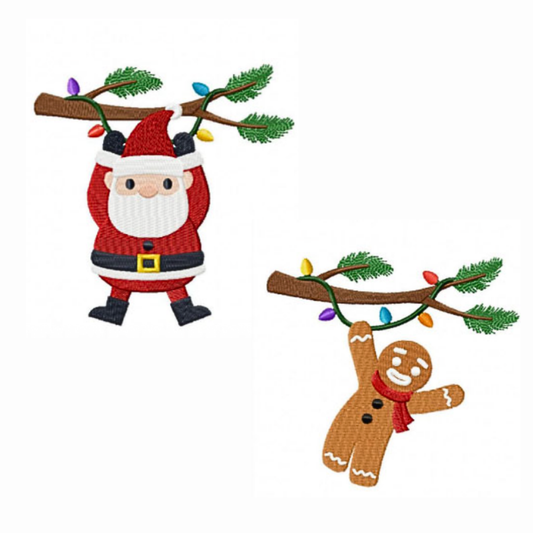 6 Motifs de broderie machine : Personnages de Noël sur branche