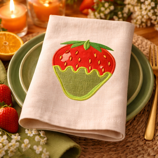 Motif de broderie machine : Appliqué Fraise Thé Matcha