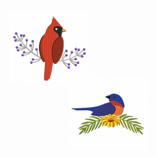 Pack of 16 digital embroidery designs: Spring birds with flowers
