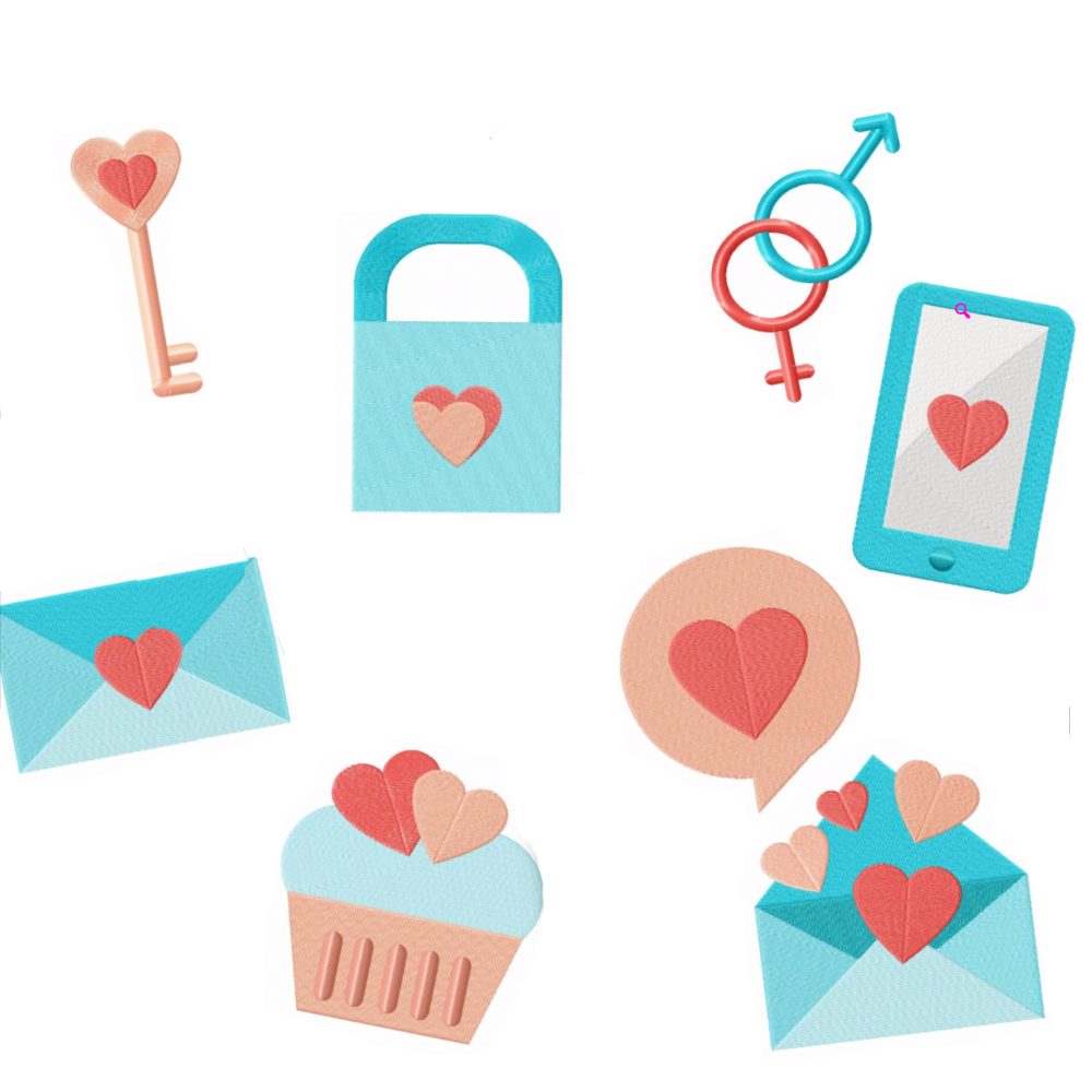 8 motifs de broderie machine : Icônes de Saint-Valentin