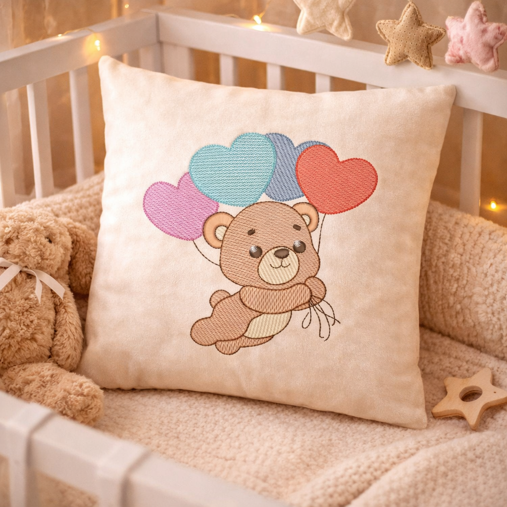 Motif de broderie machine : Ourson avec Ballon en Coeur