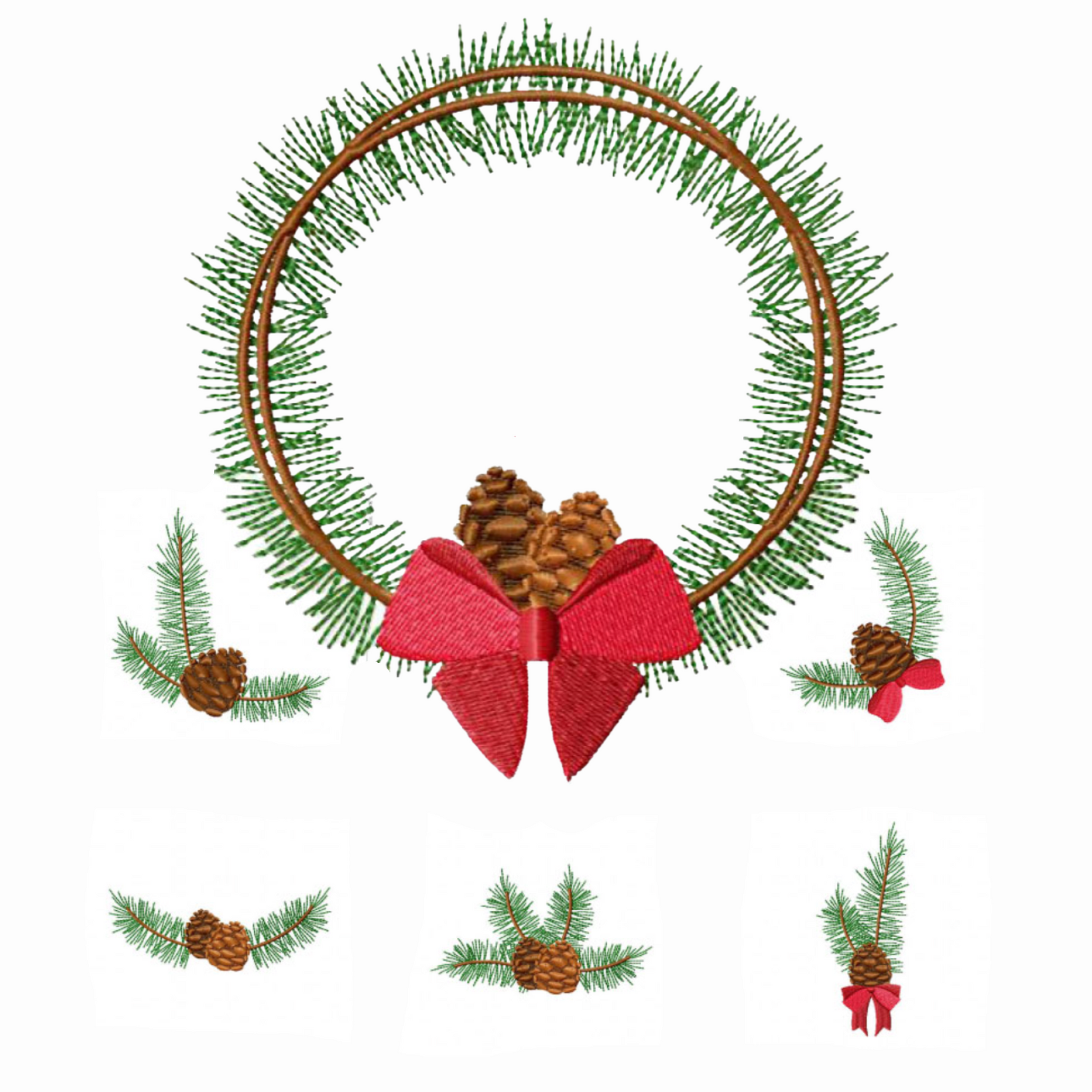 Pack 6 motifs de broderie numérique: Pommes de pin